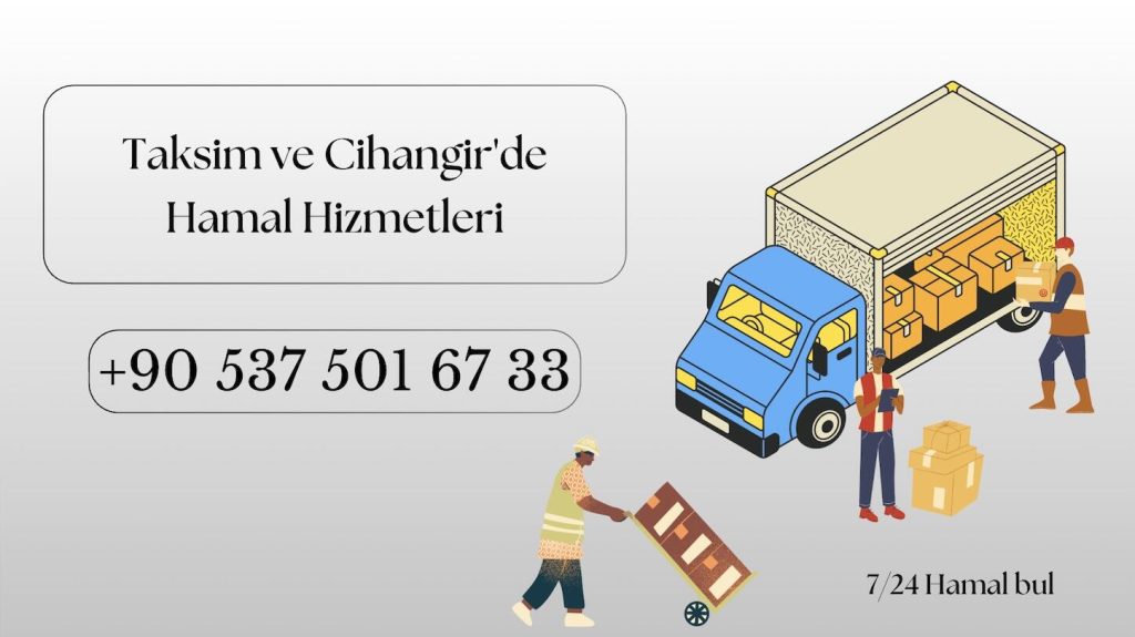 Hamal eşya taşıma hizmetini Taksim ve Cihangir’de vermekteyiz. Hamal lazımsa bize ulaşabilirsiniz. Parça eşya taşıma, evden eve nakliyat, para kasası taşıma ve ofis eşya taşıma hızlı ve profesyonel ekibimiz ile hizmet vermekteyiz.